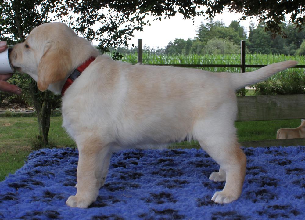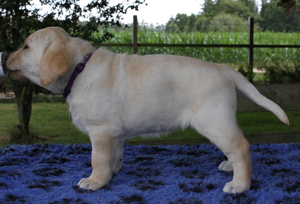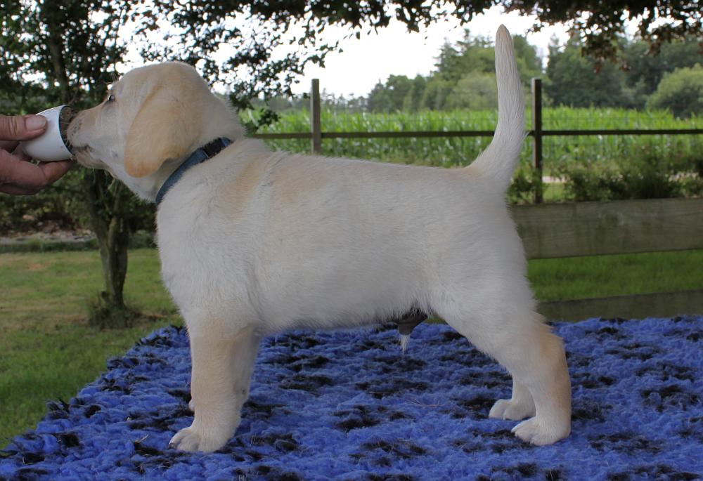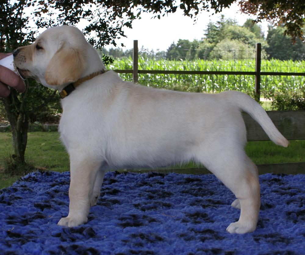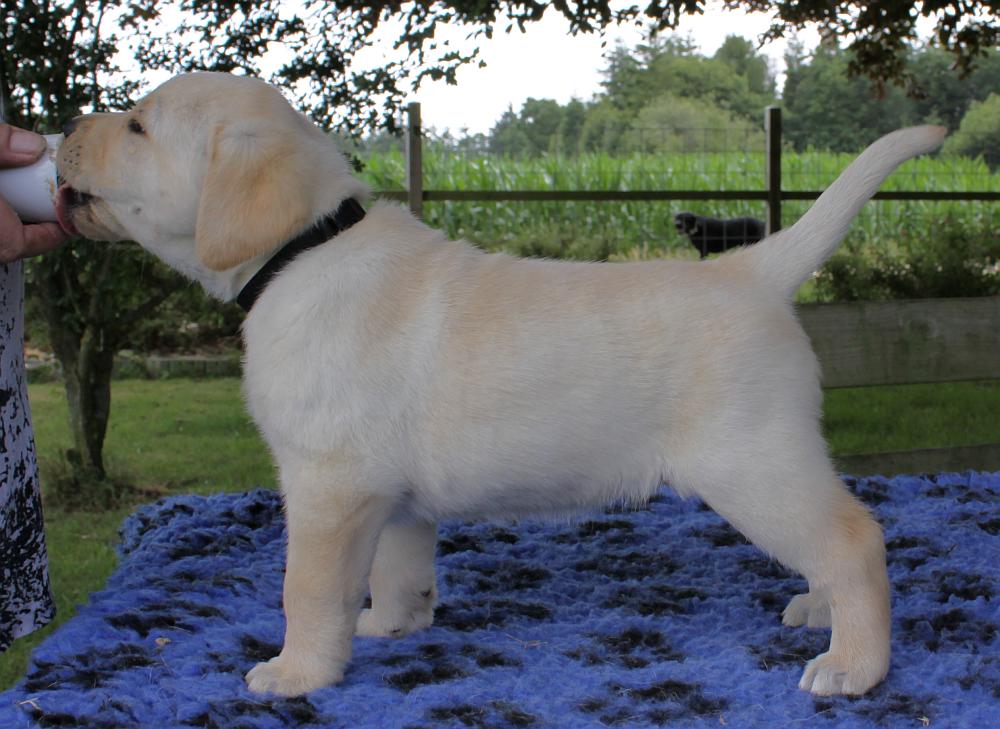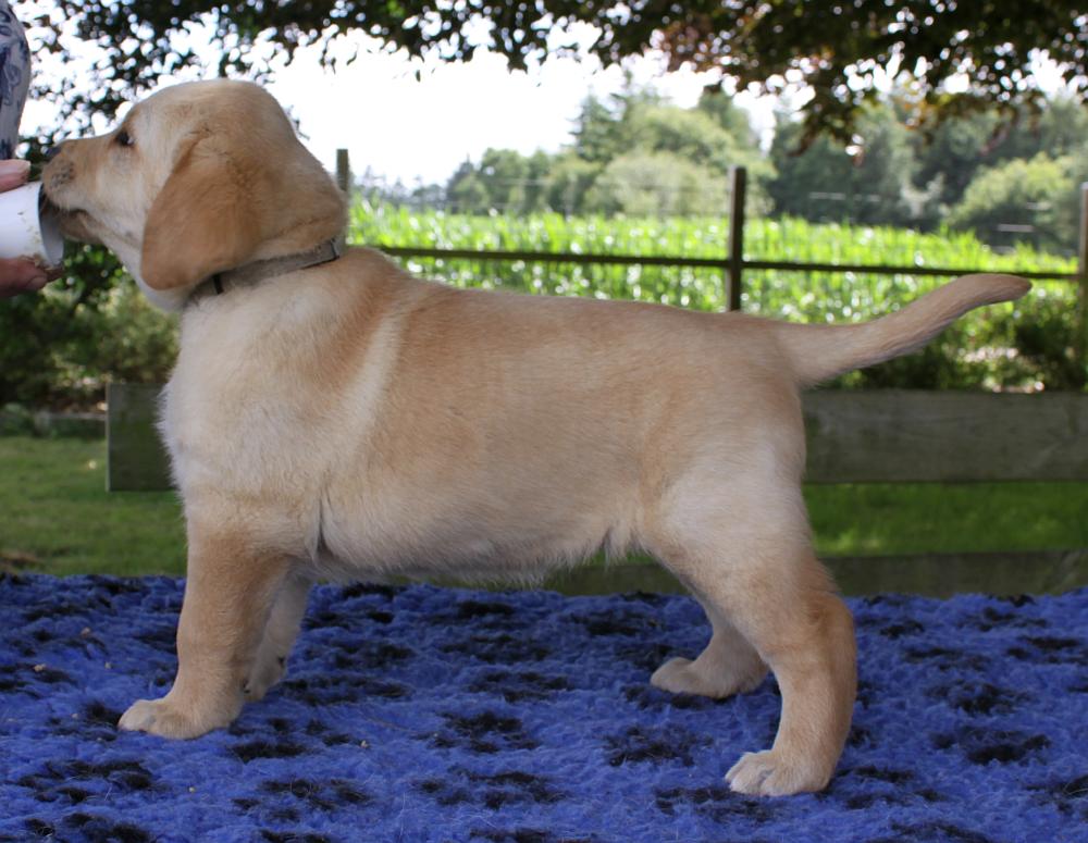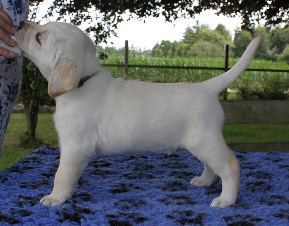 | Labrandrer Athene - flotte vinkler, fint forbryst, ikke så vild pels som andre af hvalpene, men smuk som et stjerneskud. Halen 'hænger lidt', men det er fordi leverpostej smager vildt godt. | |||