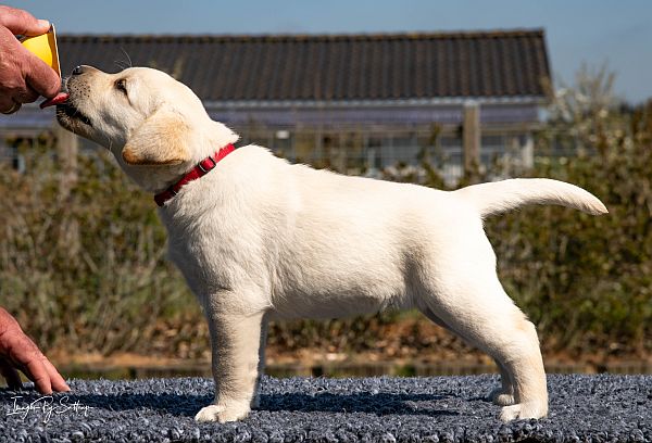 | 08.04: Også i dag er der sket nyt hos Kennel Labrander. Veras hvalpe har fået kulørte halsbånd på og er blevet vejet. Det var så nok det. I disse Corona tider er det begrænset, hvilke store oplevelser man kan rende ind i på en dag. Efterhånden er det en fest, bare der kører en bil forbi. | |||
