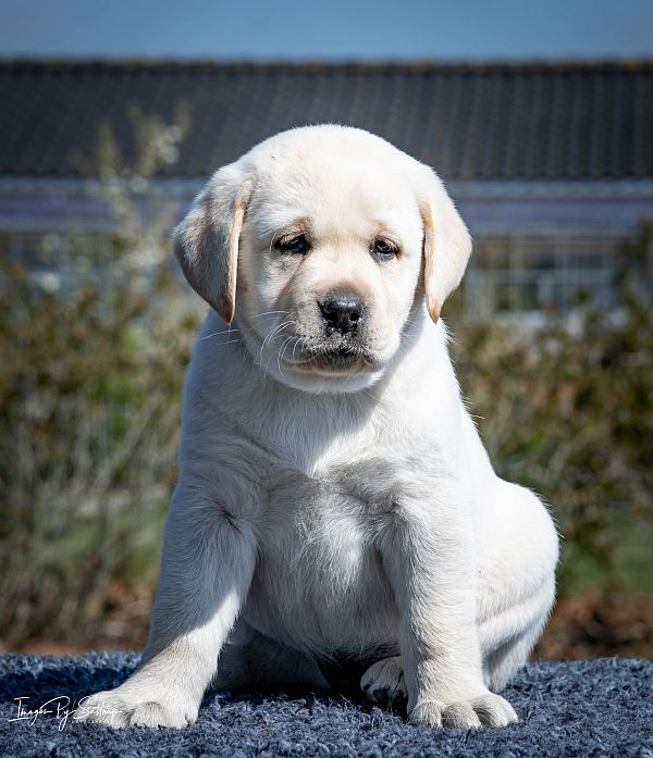 | 07.04: I dag er der sket store ting i Vera hvalpenes liv. De har været udenfor for første gang, og det tog de egentlig forholdsvis pænt. Der var lidt piberi, sikkert på grund af alt det lys, der er ude i solen. Det kan sikkert virke temmelig overvældende dagen efter, man har fået øjne. De løber ikke rundt i hele haven endnu, men der var da et par stykker, der fik møvet/mavet/vrikket sig væk fra tæppet. Desuden har de fået registreret deres navne ved DKK. Tæverne hedder: Labrander Giza, Labrander Galatea, Labrander Guenevere og Labrander Gardenia Hannerne har vi navngivet: Labrander Geronimo, Labrander Galahad og Labrander Gandhi. Vi ved godt at de fleste af hvalpene efterfølgende får nye kaldenavne, og det er naturligvis helt fint med os. Vi forsøger at undgå for mange almindelige menneskenavne, og tidligere forsøgte vi at holde os til mytologien. Men det her er jo vores G2 kuld, så med 12 hvalpe i G1 kuldet, er mange af de bedste brugt. | |||