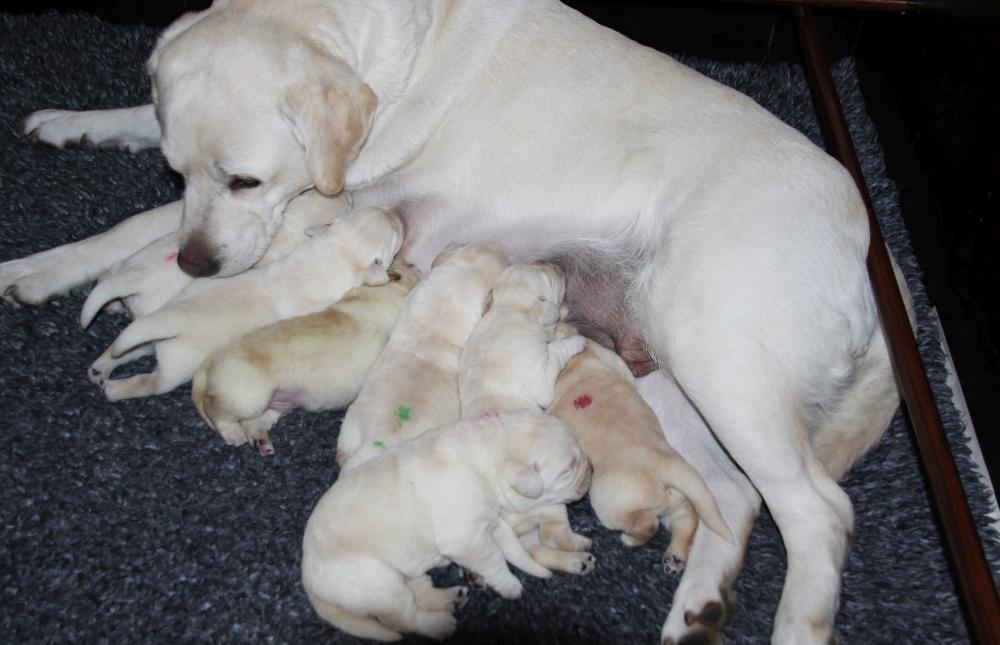 | Hvalpene er nu så store at der er trængsel ve mælkebaren | |||||