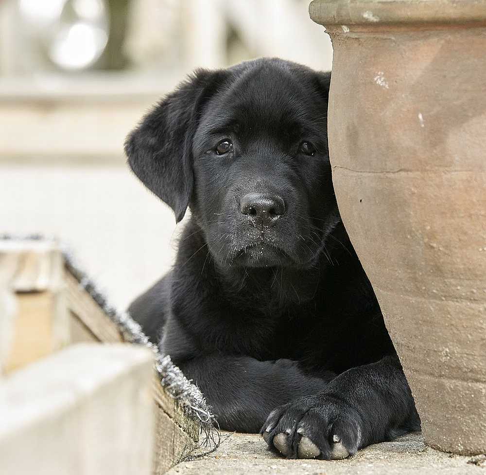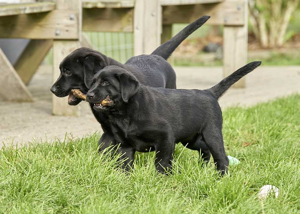 | Carla med sin lille ven Lilo. Det er altså ikke en helt ægte labrador, men det tror hun nu nok selv, hun er. Lilo er en old english bulldog, men mindre end de andre hvalpe i hendes kuld. |