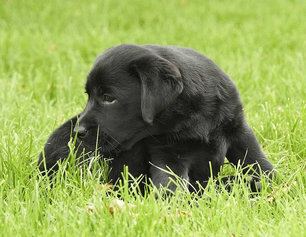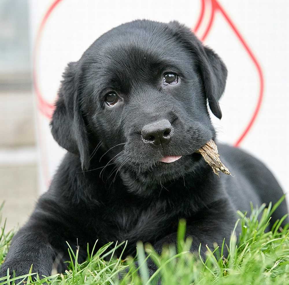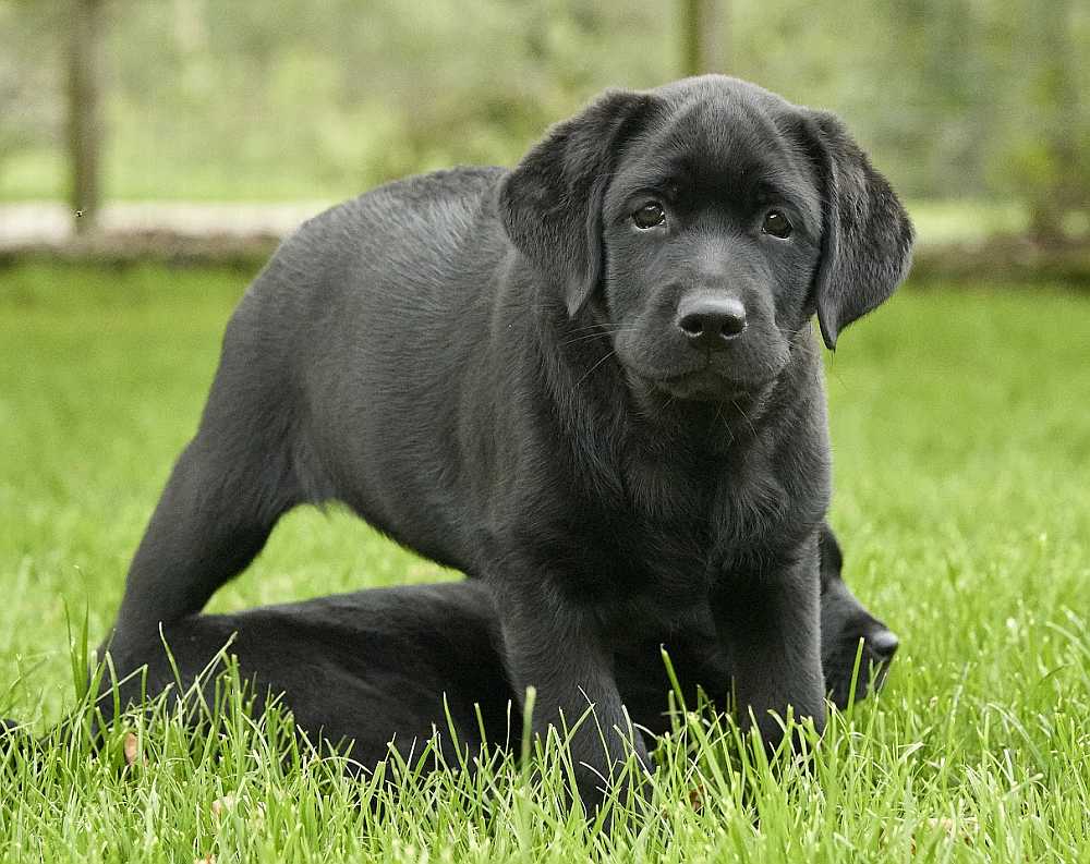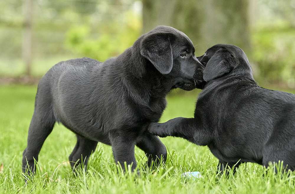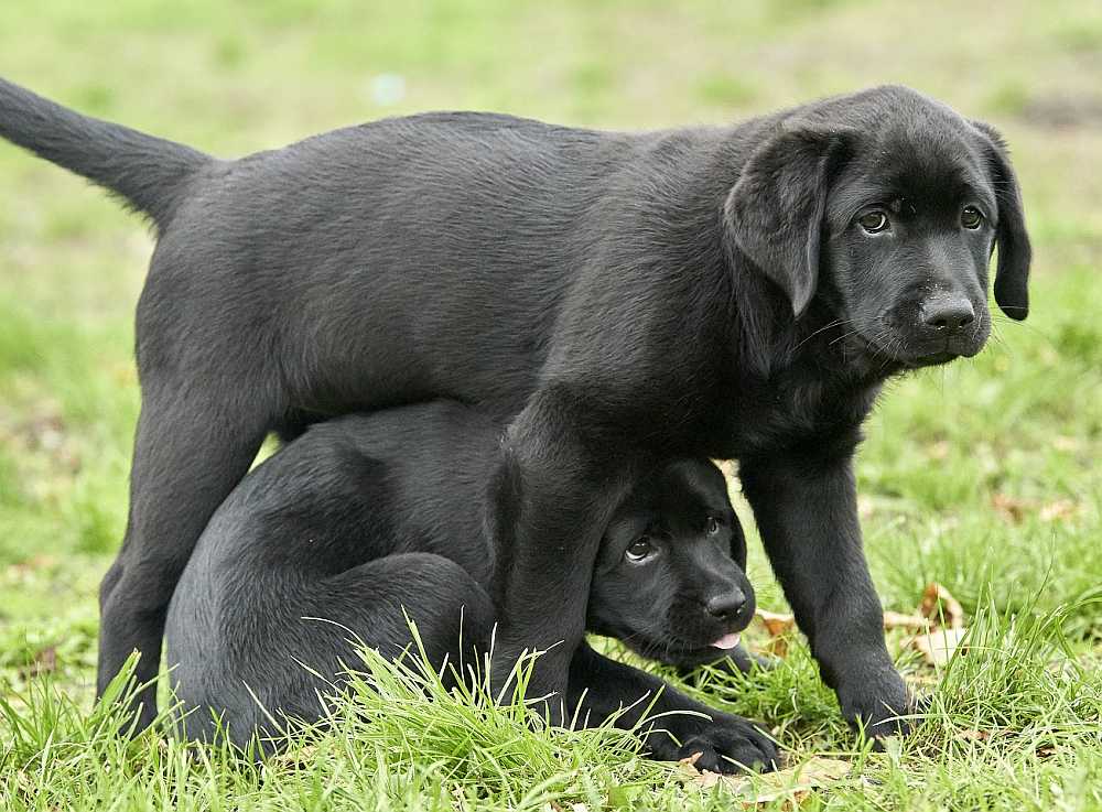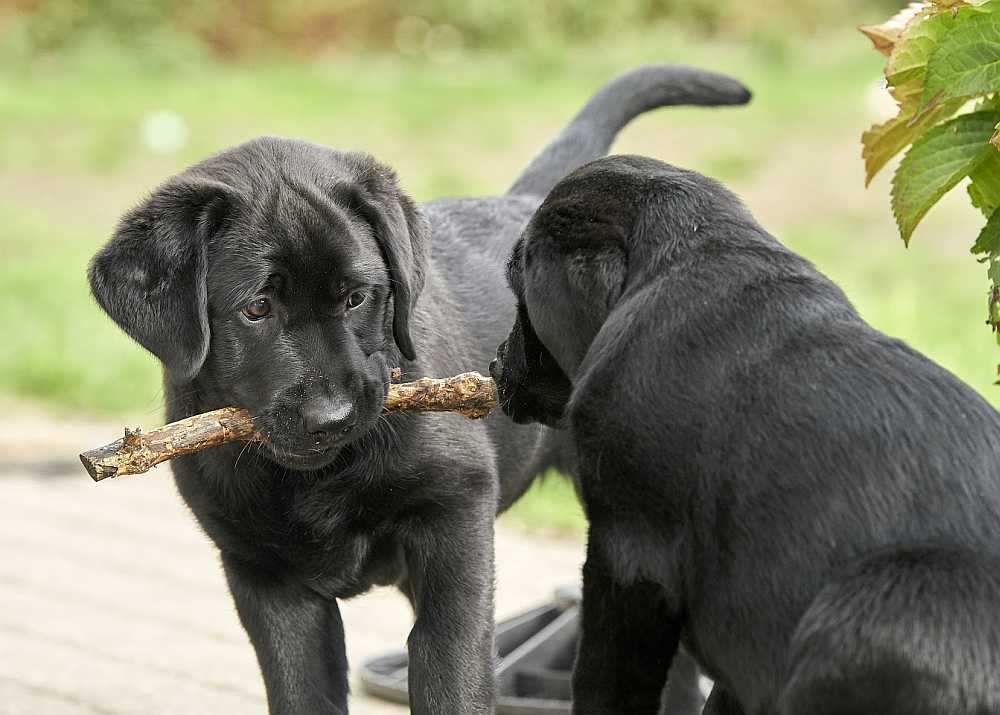 | Carla med sin lille ven Lilo. Det er altså ikke en helt ægte labrador, men det tror hun nu nok selv, hun er. Lilo er en old english bulldog, men mindre end de andre hvalpe i hendes kuld. |