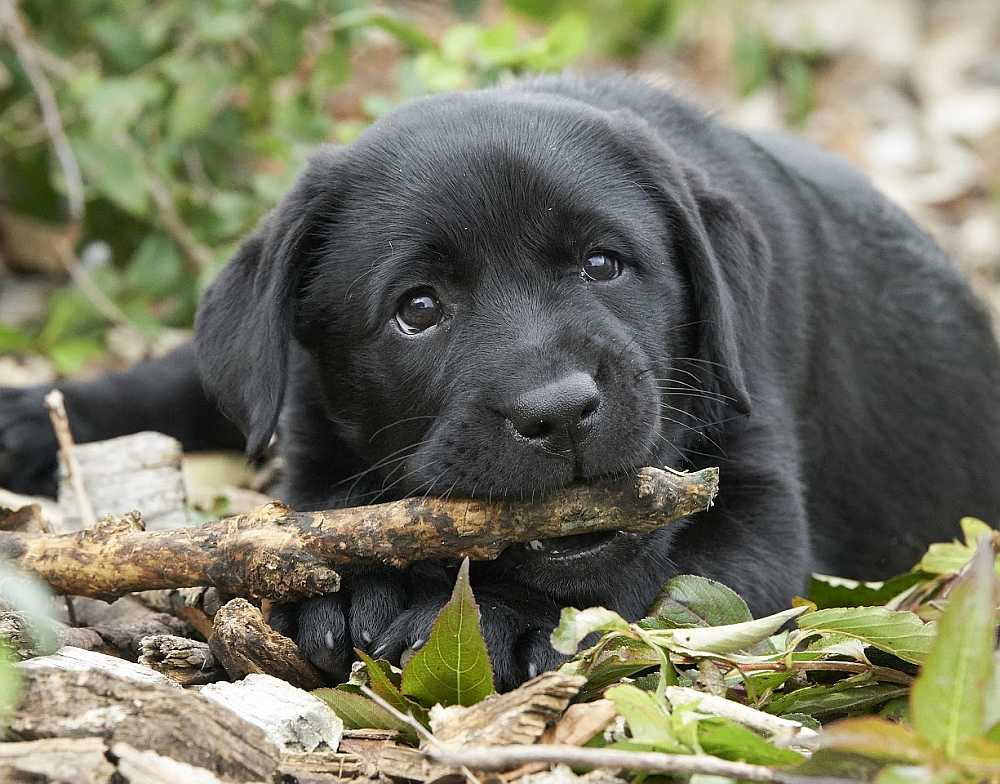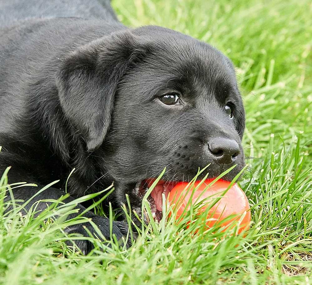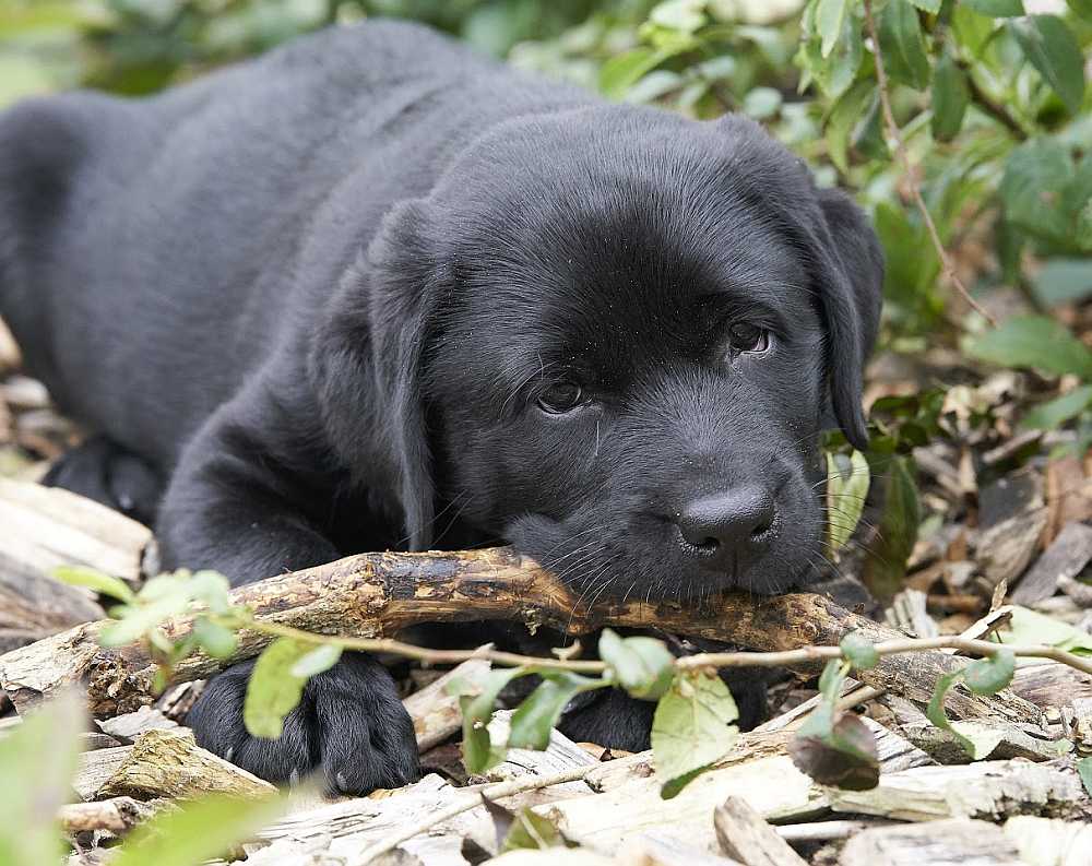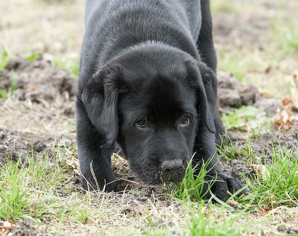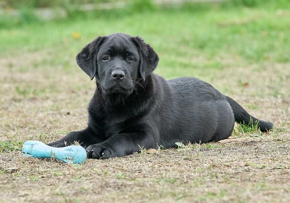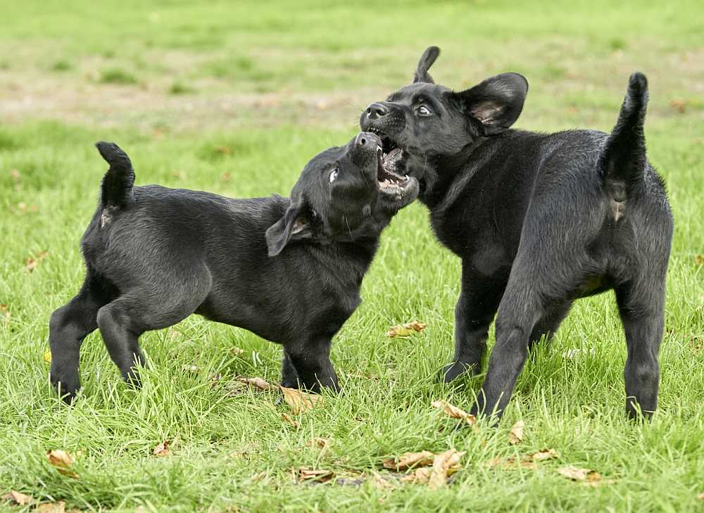 | Carla med sin lille ven Lilo. Det er altså ikke en helt ægte labrador, men det tror hun nu nok selv, hun er. Lilo er en old english bulldog, men mindre end de andre hvalpe i hendes kuld. |