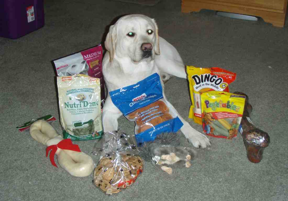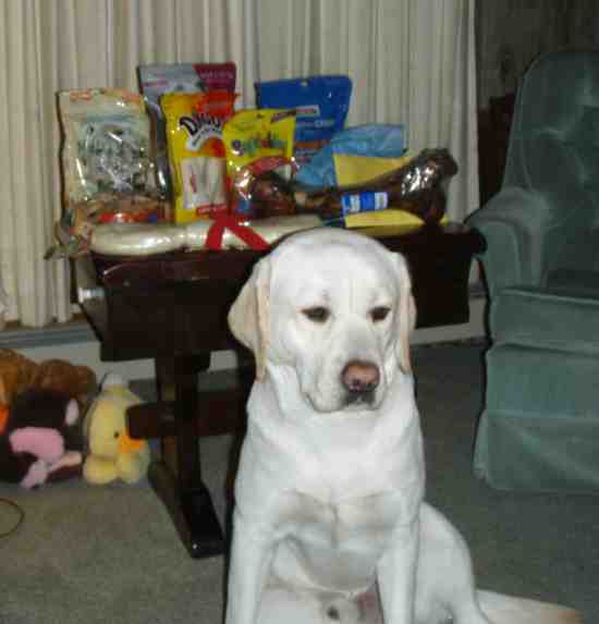 21.12: Vi fik nu tilladelse til at bringe et par billeder fra USA, hvor førerhunden Wimsey (Labrander Eldorado) og hans ejer, Henrik, virkelig forstår at holde en 2-års fødselsdag på ægte labradorvis! Wimsey havde selv fået lov til at komme med ind i forretningen og udvælge de gaver, han helst ville have, og han havde efter nøje overvejelse og med mange ting taget ned fra hylderne og derefter kasseret valgt de her afbildede "småting". Vi bringer billederne også for at vise Paul Erik Høys gamle venner, som kendte Wimsey før han blev til "førerhunden Wimsey", hvor godt et hundeliv, han har fået sammen med Henrik. Wimsey skal i øvrigt op til sin sidste "eksamen" som førerhund inden nytår, og selvfølgelig stoler Henrik på, at hans dejlige hund klarer det også. Tak til Henrik for billederne og alle hilsenerne, og held og lykke til Wimsey! |