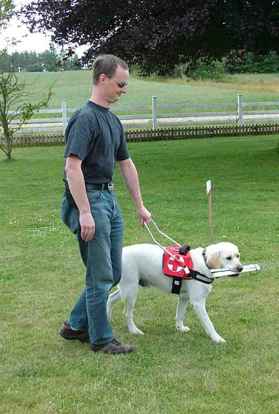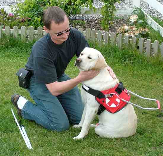 | PRALE, PRALE: Labrander El Dorado (Wimsey) har den 30.12.09 bestået sin sidste førerhundeeksamen i USA. Han har nu papir på, at han er godkendt som førerhund derovre og har gennemgået det træningsforløb, der knytter sig til det. Wimsey er fra Nanna/Darios E-kuld og blev den 19.12.09 2 år. Wimsey var i sin tid Paul Erik Høys hund, og da Paul Erik pludselig og uventet døde i oktober 2008, var det helt naturligt for os og med garanti efter Paul Eriks ønske, at Wimsey skulle hjem til os igen. På dette tidspunkt havde vi i samarbejde med Henrik Kostow (Wimseys nuværende ejer) og Paul Erik planer om, at Wimseys bror Ekko skulle bo og trænes i almindelig lydighed og socialisering her hos os, og senere afleveres til Henrik, som så i privat regi ville få færdigtrænet Ekko som førerhund i Tyskland, hvor Henrik boede på daværende tidspunkt. Henrik er katolsk præst og i forbindelse med arbejde er han for tiden udstationeret i USA. Ved røntgenundersøgelsen, da E-kuldet var 1 år gamle, havde vi både Wimsey, Ekko og Pona med til dyrlæge Engelhard. Både Pona og Wimsey havde tip top hofter og albuer, mens Ekko havde en 1 på den ene albue. I lyset af dette resultat og fordi Paul Erik havde deltaget aktivt i hele forløbet og havde haft en del kommunikation med Henrik via mail, virkede det pludselig så indlysende og rigtigt, at Wimsey skulle være Henriks nye førerhundeaspirant. Vi satte derfor ind med intensiv træning af Wimsey, bl.a. blev han på kort tid et kendt ansigt i vores kirke, da han naturligvis skulle lære at forholde sig roligt både ved lyden af kirkeklokker og orgelmusik. Wimsey er siden konverteret og er nu aktivt udøvende katolik, fortæller Henrik. Wimsey blev hentet af Henrik i juni måned 2009, og fra det øjeblik Henrik trådte ind i haven her hos os, var Wimsey hans hund, og nu er han så også på papiret blevet hans førerhund. Det lyder måske som et eventyr, men rent faktisk var det så tydeligt, at da vi efter en times tid med snak og kaffe ville øve lidt indkald, så Henrik kunne prøve at kalde på Wimsey, så måtte vi trække Wimsey væk fra Henrik. Han forlod ham ikke frivilligt. Og sådan har det været siden. Ingen bad om at se papirer da Henrik og Wimsey 1 måneds tid senere fløj til USA, hvor Wimsey naturligvis skulle opholde sig inde i kabinen med Henrik. Wimsey opførte sig som en erfaren flyvevant førerhund, og når Henrik hele tiden har vist Wimsey en ufattelig tillid og ladet ham føre sig på gader og veje, så har Wimsey til gengæld opført sig som en fuldbefaren førerhund, og ledt Henrik sikkert udenom skraldespande på fortov osv. En sand solstrålehistorie, som vi er utrolig glade for at kunne fortælle, og samtidig sender vi de kærligste hilsener til den fantastiske førerhund, Wimsey, og hans ligeså fantastiske ejer, Henrik Kostow. Vi er så stolte af Jer begge to, og det ville Paul Erik Høy også have været. | |